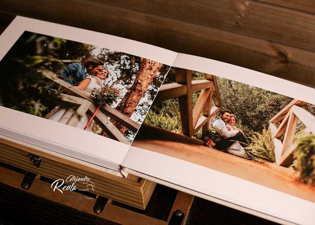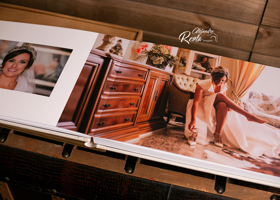 Nuestros álbumes de Boda se maquetan con el preBoda, la Boda y el postBoda en el mismo álbum, en 35 hojas de papel fotográfico, con acabado satinado o mate y perfectamente revisado por los novios antes de su impresión.